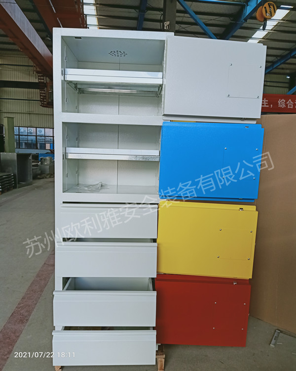 苏州欧利雅安全装备有限公司是一家集研发、设计、制造、销售安全柜、防爆柜、危废暂存间、废弃物暂存柜、净气型药品柜、智能型危化品储存柜、室外危化品储存柜、危化品防爆集装箱、危险化学品防爆仓库、易燃品毒害品柜和服务为一体的中型股份制企业,工厂位于苏州相城区望亭镇何家角工业园区窑上路88号。