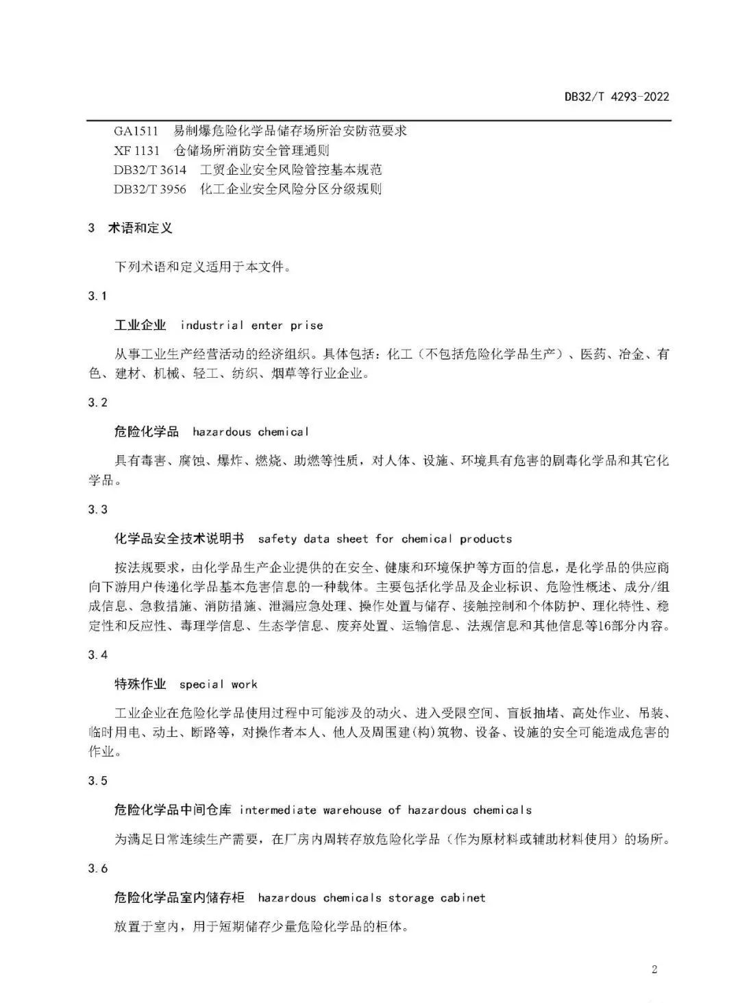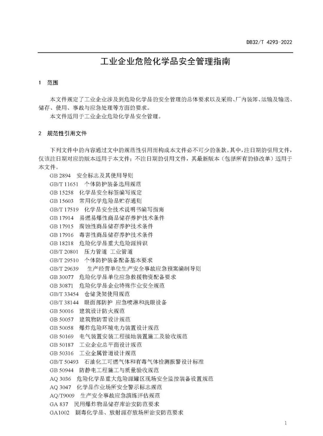《工业企业危险化学品安全管理指南》(DB32/T4293-2022)发布 ,8月4日实施