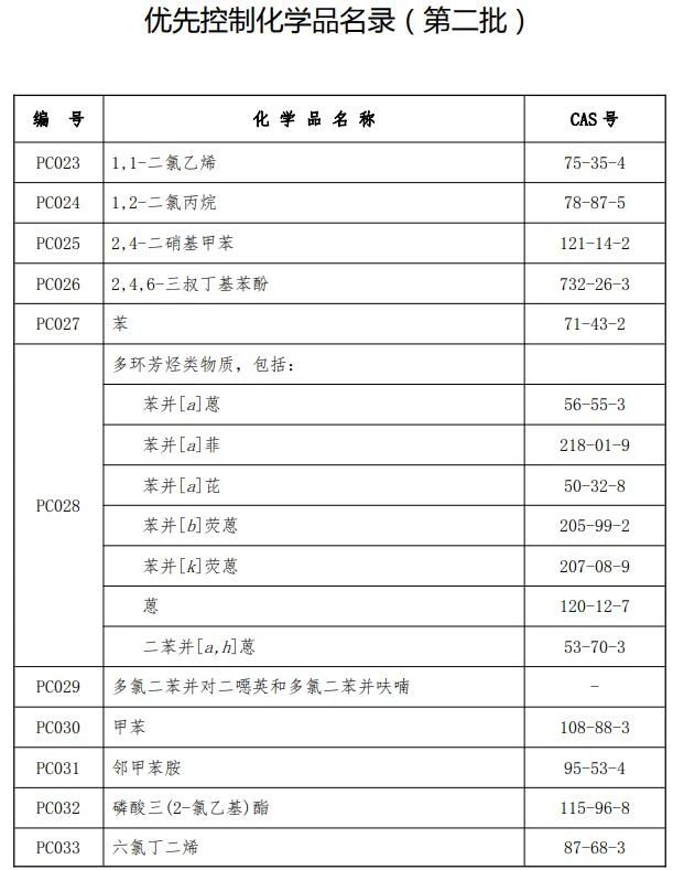 近日,生态环境部、工业和信息化部、卫生健康委联合印发《优先控制化学品名录(第二批)》,收录了18种/类化学品。